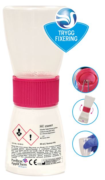 Histofix®-Safe Slutet System är en revolutionerande slutet system för formalin fylld med 20ml och 40ml formaldehyd 4% buffrad.